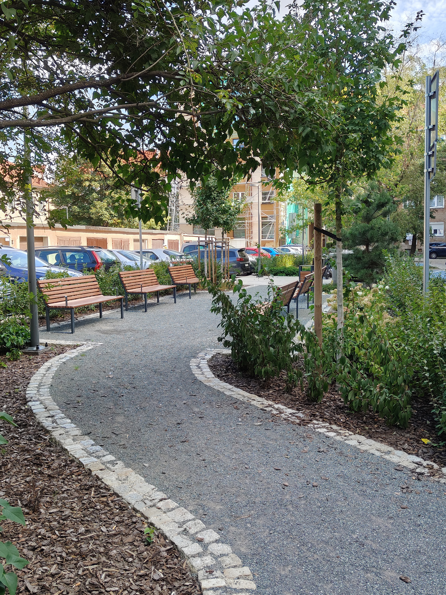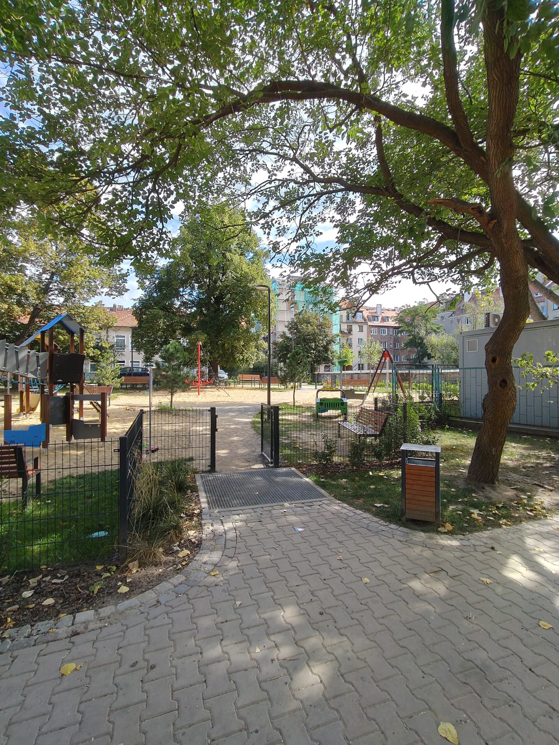 wykonanie nowego układu komunikacyjnego, ciągów pieszo-jezdnych, podziemnych MZO, miejsc postojowych, chodników i ścieżek, budowa instalacji kanalizacji deszczowej, przebudowa kanałów wentylacyjnych schronów, nowe nasadzenia; oświetlenie, budowa i montaż elementów małej architektury i wyposażenia terenu; boisko do streetball-u, siłownia zewnętrzna, plac zabaw i tereny odpoczynku.