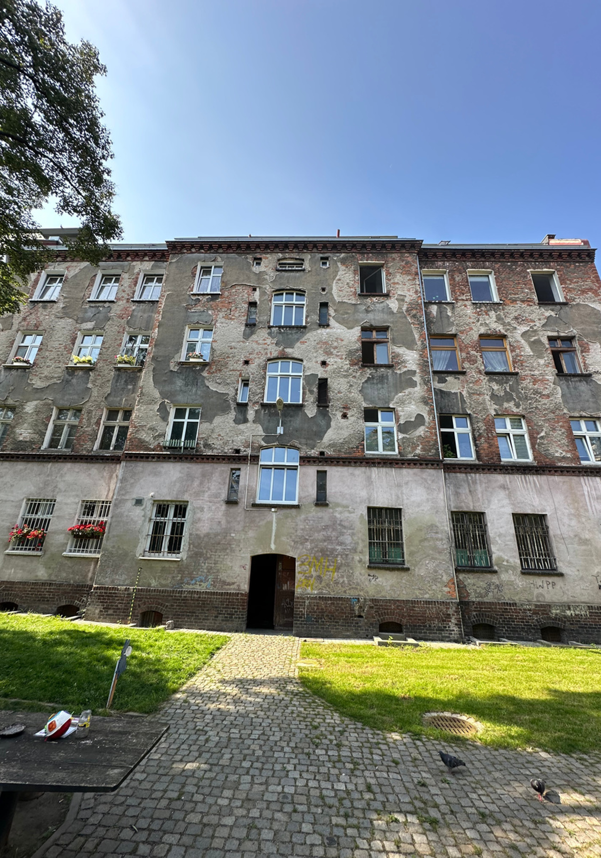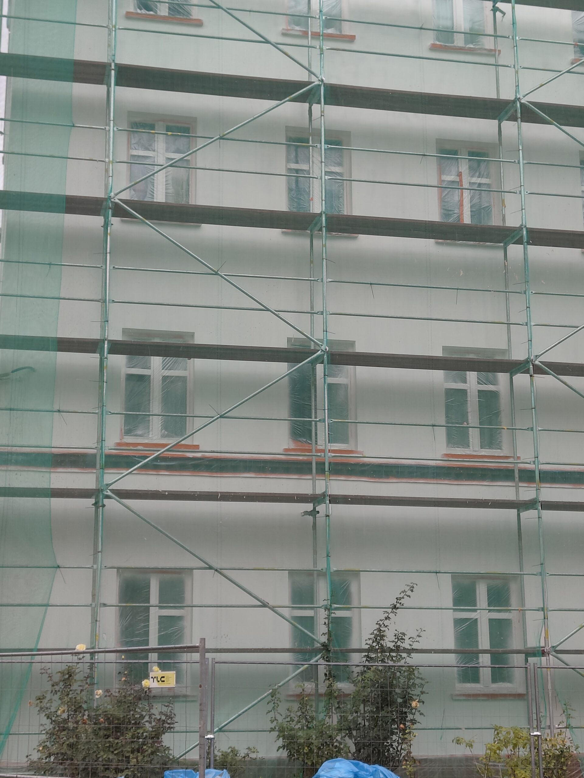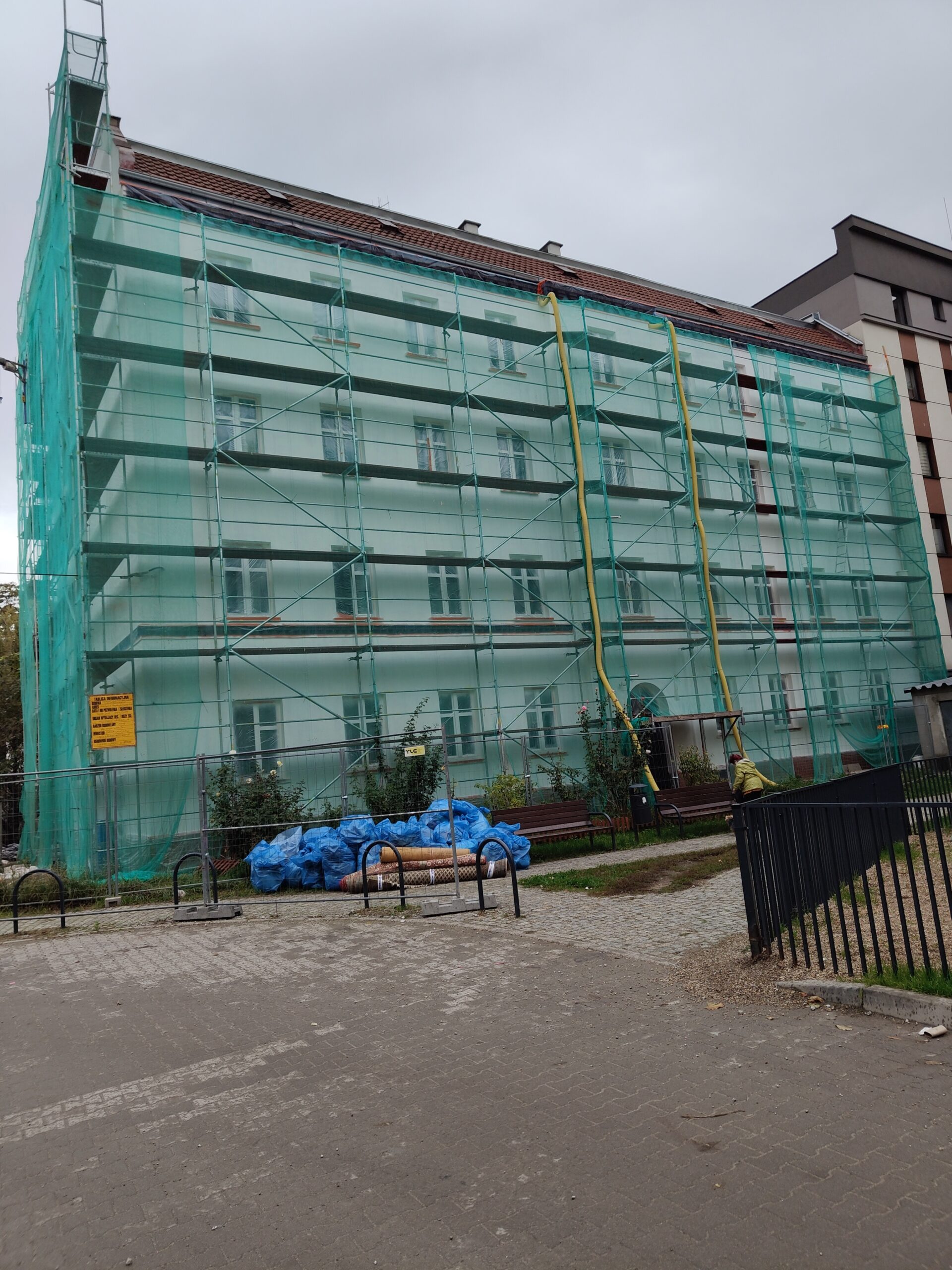 Remont z termomodernizacją w zakresie: remont dachu i strychu, ocieplenie ścian klatki schodowej od strony strychu, ocieplenie dachu nad klatką schodową, wymianę obróbek blacharskich, wymianę rynien i rur spustowych remont elewacji frontowej, tylnej i bocznej, wymianę stolarki okiennej na drewnianą na elewacji frontowej i PCV na tylnej, wraz z parapetami i podokiennikami z zachowaniem historycznych podziałów, renowację stolarki drzwiowej, wymianę obróbek blacharskich, wymianę rur spustowych, montaż zabezpieczeń przed ptakami.