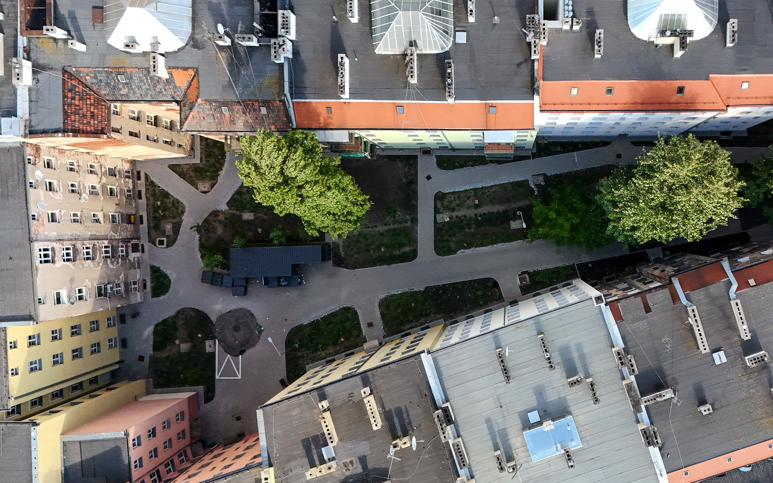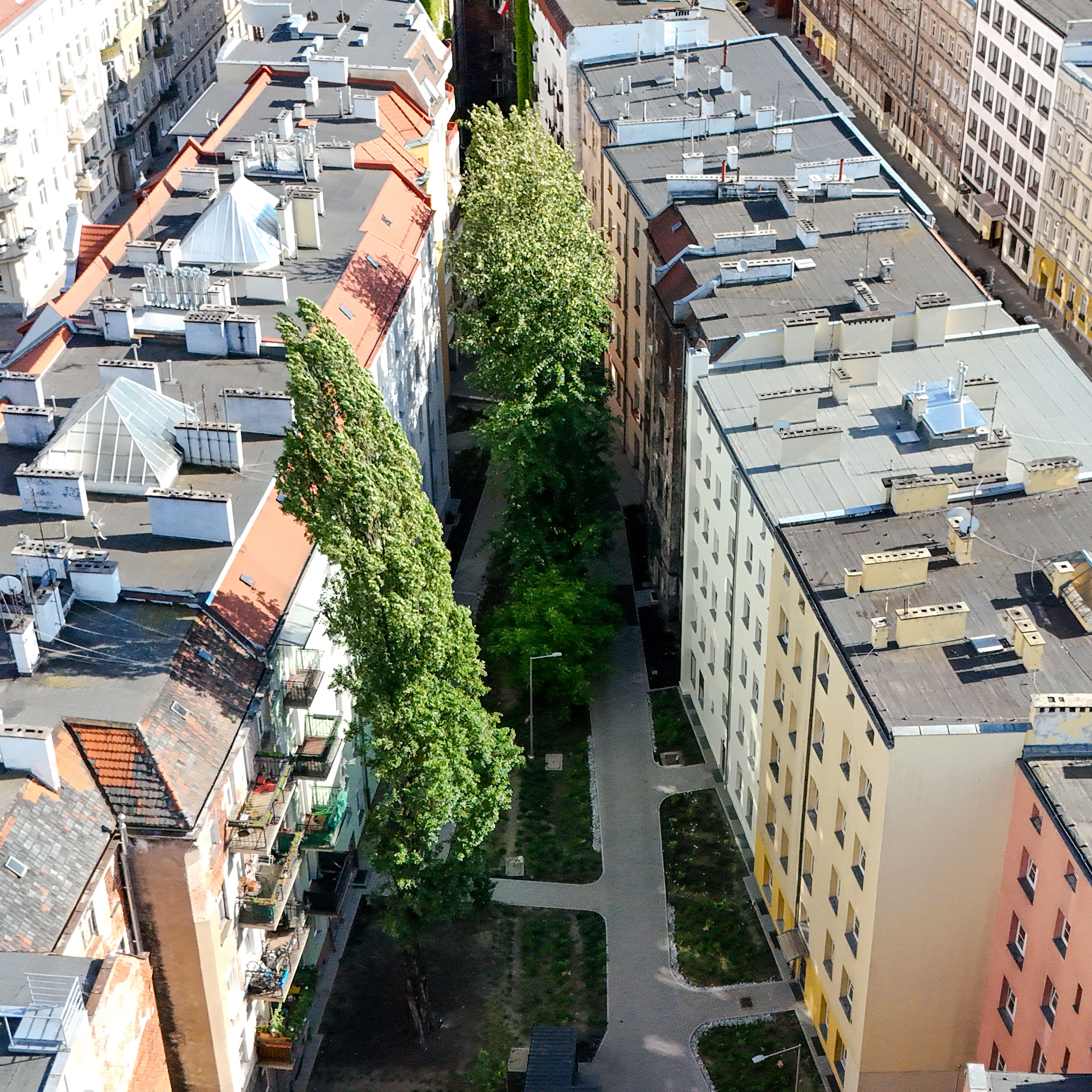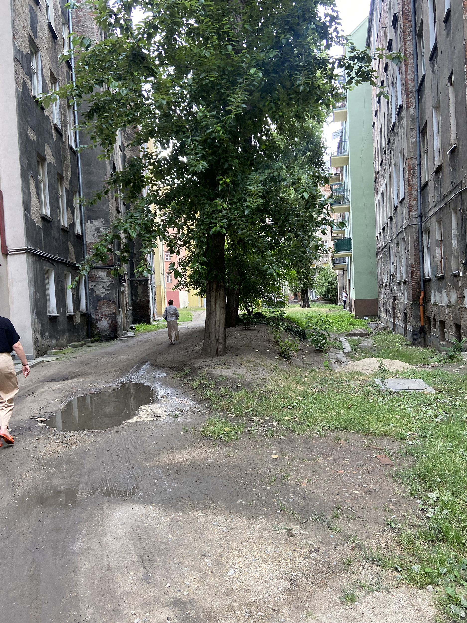Realizacja w trybie zaprojektuj i wybuduj. Projekt obejmuje utworzenie ciągów pieszo jezdnych z nawierzchnie mineralnych, oczyszczenie i uporządkowanie terenu, rekultywację trawników, oświetlenie, utwardzenie nawierzchni pod mzo + trejaże + obsadzenie roślinnością.