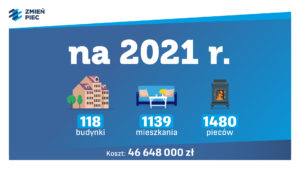 W 2021 roku liczby te wzrosną prawie trzykrotnie ( 118 budynków, 1139 mieszkań, co daje likwidację – 1480 pieców, koszt ponad 46,6 mln zł)